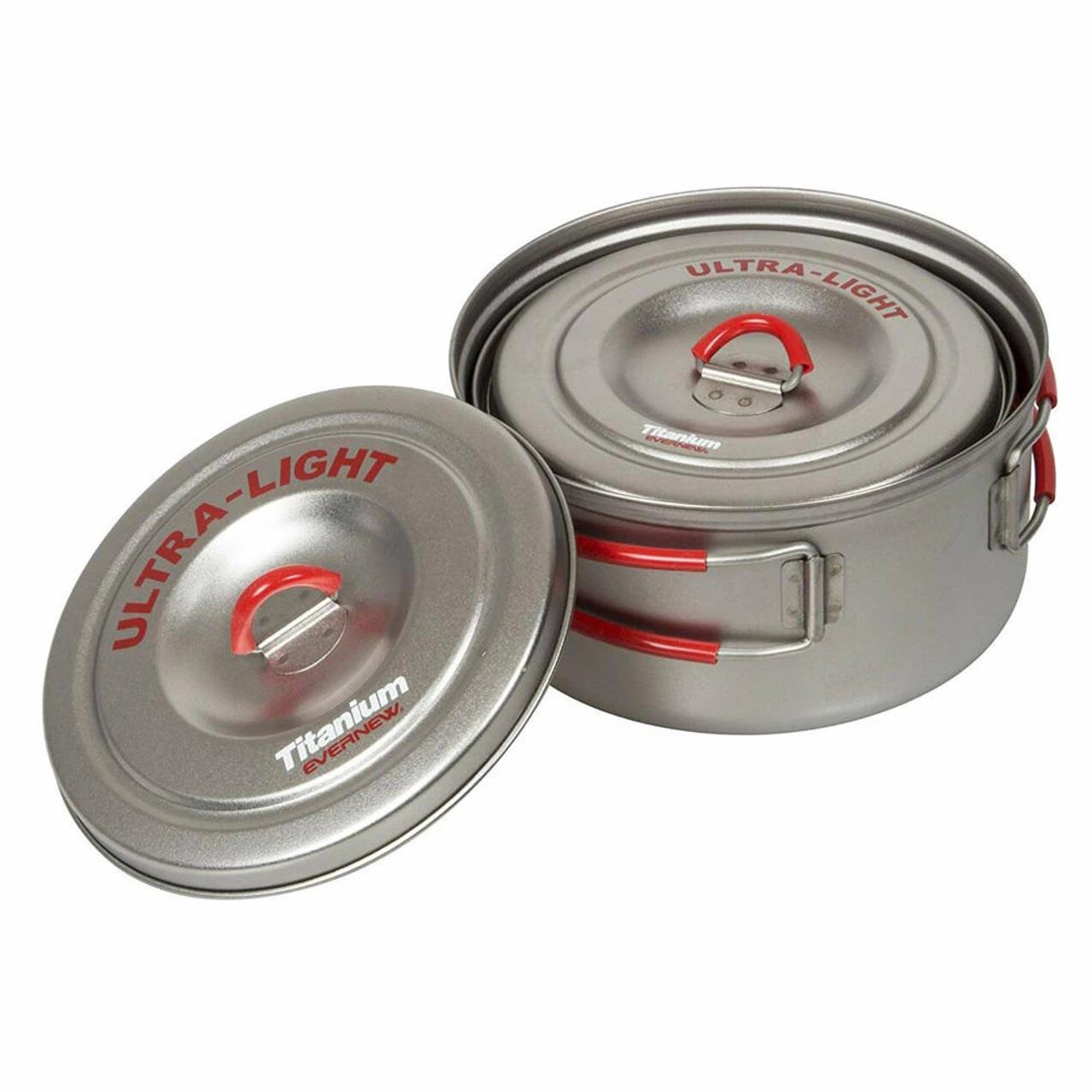 Evernew pots are particularly good at nesting with each other which minimises the space taken up in your pack feature-wise this set has all those required and we like the graduations – you can see them for a start (on many pots they are small and difficult to read).