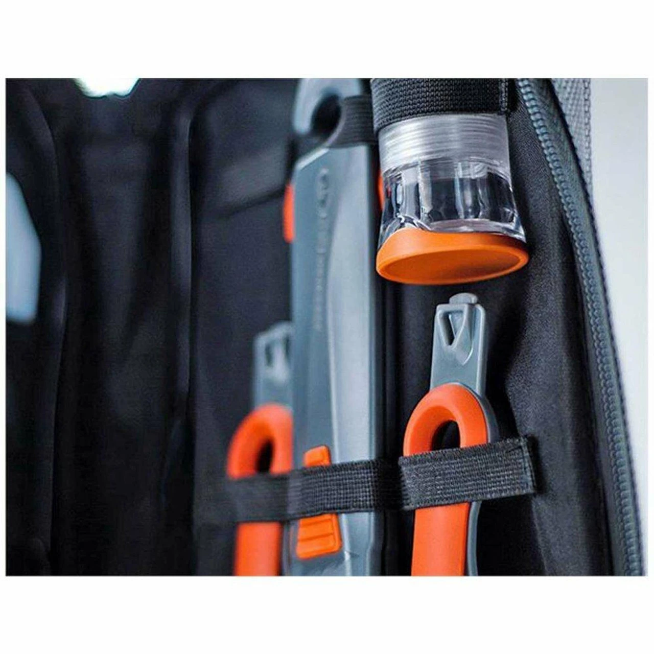The Gourmet Kitchen set is an eleven-piece kitchen set with almost every utensil you may need to turn your camping expedition into a gourmet’s adventure. The Set does not come with a knife which you will most likely need however there is an extra slot in the kit where you could easily fit one.