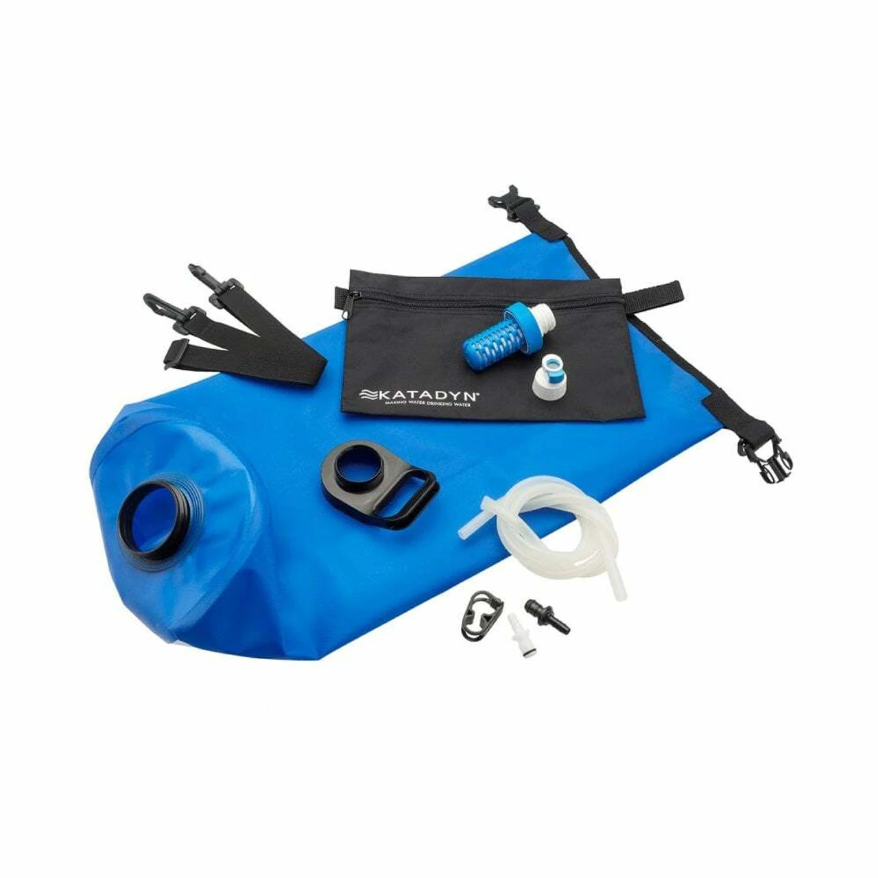 The sleek, foldable Katadyn BeFree Gravity 6L filter system uses gravity to get the freshest, cleanest water you can trust. The heart of the BeFree Gravity 6L is the EZ-Clean Membrane offering a fast flow rate of up to 2 liters per minute. The water passes through a hollow filter which safely removes bacteria, cysts and sediment with its pore size of .01 micron (0.0001 mm). Thanks to the water level indicator window, it is clearly visible when refilling is necessary. The practical carrying strap allows you to haul a full filter back to camp effortlessly, where it can be hung in a nearby tree. The ouput hose can easily be removed using a quick-release valve with automatic flow-stop, to prevent contact with contaminated water when refilling.