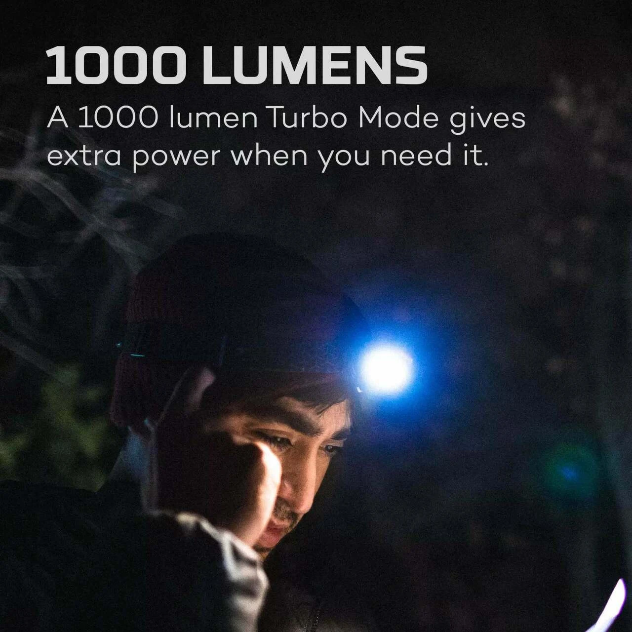 The Einstein™ 1000 by NEBO is a low-profile, compact 1,000 lumen headlamp with 5 light modes featuring flex power. Use the included rechargeable battery or 2 x CR123A batteries.
