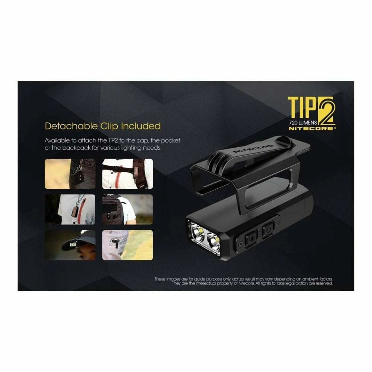 The TIP 2 features a demo mode which automatically turns off after 30 seconds and a daily mode providing long-time illumination. The light offers four brightness levels ranging from 1 to 720 lumens. The keyring torch has a CNC machined, aluminium alloy design which makes the torch lightweight and offers excellent heat dissipation.
