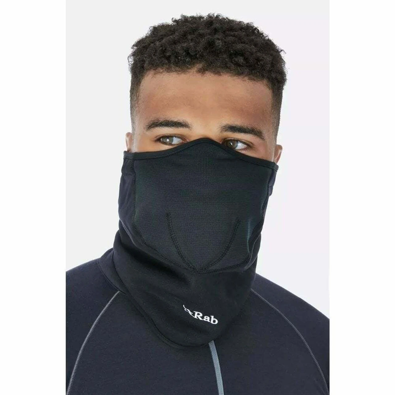 RAB says: Stretch fleece neck gaiter with zoned windproof face area.