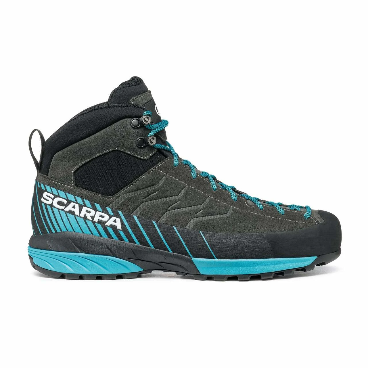 Scarpa’s Mid version of their bombproof Mescalito approach shoe the mid version offers more support for longer walks or more challenging terrain where you need a bit more protection around the ankle.