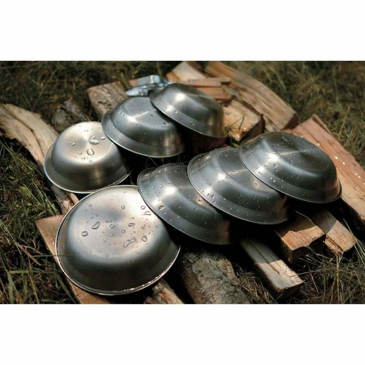 Stainless steel plate made from 0.4mm thick stainless steel is to produce thin, lightweight, tough and rust free dishes. Each piece is made to stack together taking up minimal space.