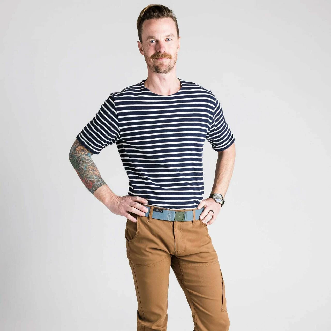 Arcade Belts’ Splice Belt uses stretch webbing to create a comfortable belt to fit almost anyone. The first time you wear it you’ll need to adjust it to get it to your size which is a bit fiddly as you have to adjust it while not wearing it, but then you’re good to go. Easy to clip on and off and the buckle itself has a really low profile and is comfortable to wear.